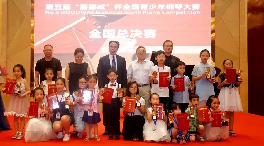 颁奖仪式结束后,出席本次颁奖音乐会的领导及嘉宾与全体获奖选手合影留恋,主持人代表嘉德威再一次感谢大赛主办方浙江省文化创意产业协会、杭州市江干区人民政府、江干区商贸旅游局的大力支持,感谢社会各界媒体的关注,感谢音乐学院的专家评委、感谢支持大赛的嘉德威全国经销商以及默默付出的工作团队成员,更感谢家长们的辛苦培养。